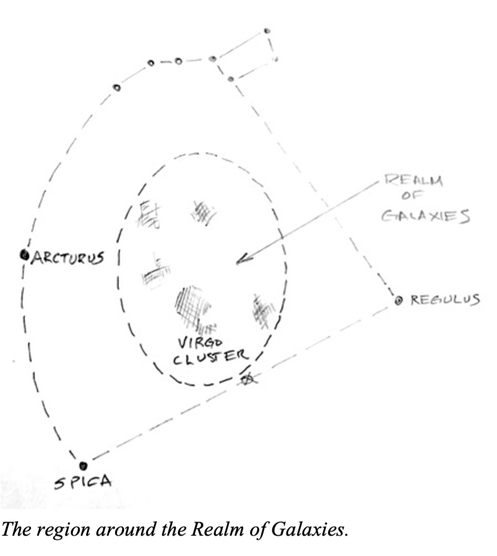 If you now draw a line between Spica and Regulus and look slightly above the midpoint of that line, you are staring at a region of space called the Realm of Galaxies.