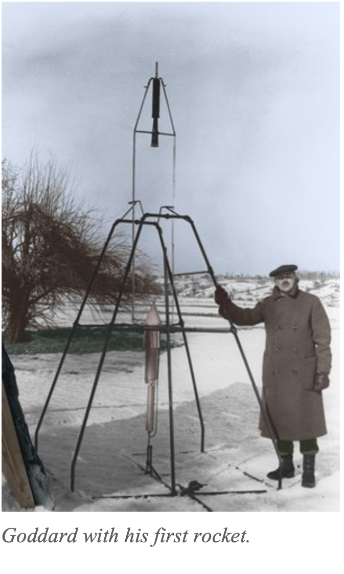 It’s interesting to me that Goddard designed and launched his rockets near Roswell, New Mexico, where my maternal grandparents lived, and where … well, you know.